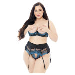 Popsi Embroidery Shelf Bra With Crotchless Panty And Garter