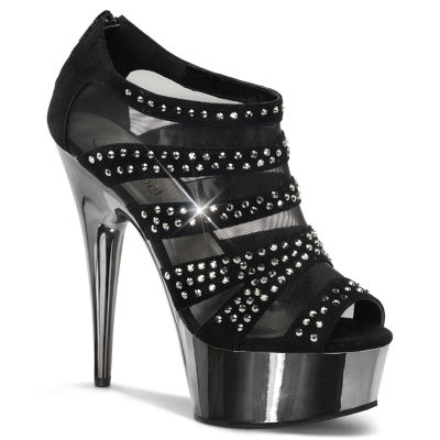 6" (15.2cm) Stiletto Heel, 1 3/4" (4.5cm) Platform Ankle Bootie with Rhinestone Covered Upper, Back Zipper