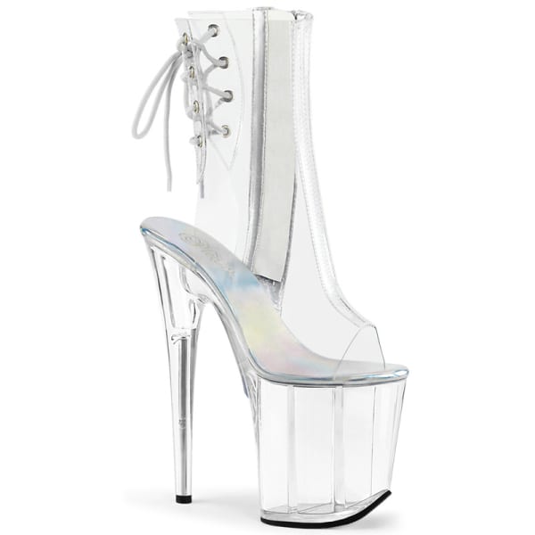 8" (200mm) Heel, 4" (100mm) Platform Open Toe/Heel Lace-Up Back Ankle Boot, Inner Side Zip Closure