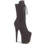 8" (200mm) Heel, 4" (100mm) Platform Lace-Up Front Mid Calf Boot Featuring Fully Wrapped Platform Bottom, Inner Side Zip Closure