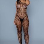 Features: Looking sexy is now even easier thanks to this revolutionary new fabric and design. Asymmetrical Fishnet detail with floral lace and one arm strap crotchless bodystocking.