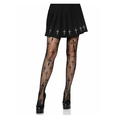 Look and feel absolutely divine in the Miki Queen Size Worship Me Net Tights by Leg Avenue. These fishnet tights feature a cross pattern, creating a daring look from a demure symbol. These are sure to be the most unique socks in the room!