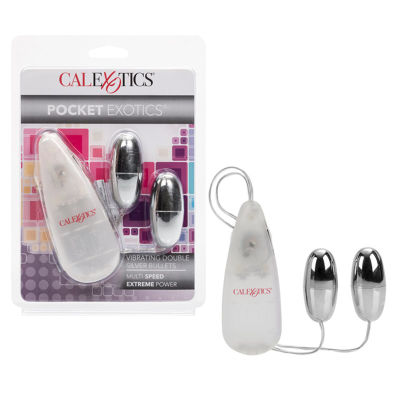 You'll find a silver shine of pleasure glowing when you enjoy with these multi-speed vibrating bullets. The Pocket Exotics Vibrating Double Silver Bullets are made from ABS with silver plating, making them safe, sensual and stimulating all in one shiny silver package.