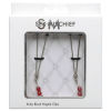 Delicate tweezer-like clamps fit to your specifications to create a pleasant intensity. Rings slide down the shaft of the tweezer clip for snug-as-you-like sensations that, making thes accessories ideal for all experience levels and pain tolerances. Soft pads on the tips create the option of added comfort, but can be removed for more of bite. Sexy yet classy red and black jewels dress up basic clamps to beautify your devious intentions.