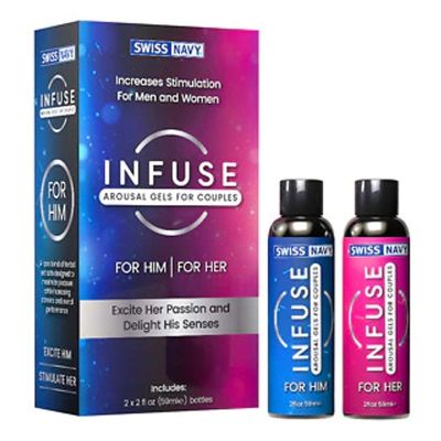 From Swiss Navy comes INFUSE, male and female gels formulated for arousal and stimulation.