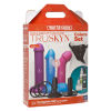 Brighten up your bedroom! The Vac- U- Lock Dual Density TRUSKYN Silicone Colors Set is ready for play in a snapjust put on the complete harness with removable o- rings and plug, choose from the included attachments, and add a squirt of Mood water- based lube. Three colorful hypoallergenic attachments in dual density TRUSKYN - - the only silicone on the market that feels like real skin - - feature a soft, pliable exterior that gives way to a firm inner core, recreating the feel of a real erect penis.