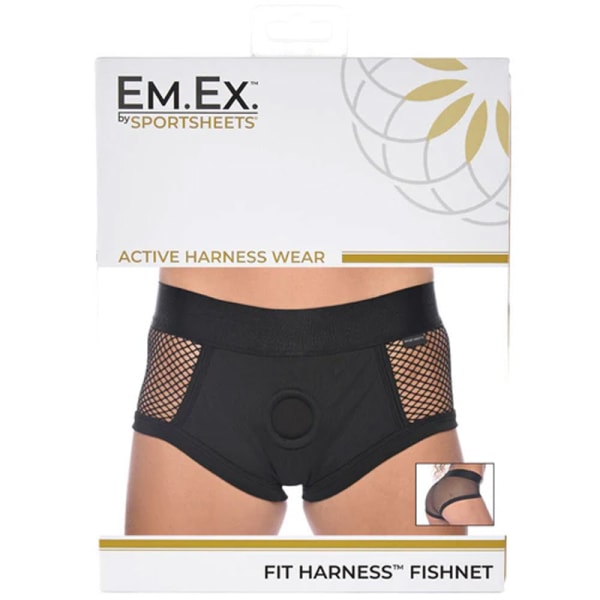 Designed for an active fit all day and all night, the Em.Ex Fit Harness allows you to be ready for a pleasure-packed experience. The interior fabric panels secure toys and provide support during play, while the soft fabric provides a comfortable stretch. With its durable elastic waistband and nitrile (rubber) “O” Ring, you can keep all your favorite accessories firmly in place. Two bullet pockets give the option of added stimulation during play or on the go. This harness is designed with fishnet for a cheeky cut that offers a flirtatious fit.