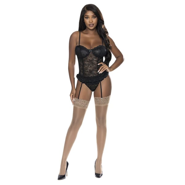 Ooh La Lace Cap Sleeve Basque And Tanga Set