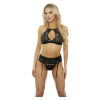 Passion Point High Neck Bra, Gartered Waist Cincher And Thong Set