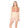 Heart applique soft cup mesh babydoll with satin ribbon tie flyaway back and matching g-string.