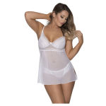 Description: From the Exposed by Magic Silk collection, this style includes: a baby doll featuring flowy, hip length mesh and lace cups, adjustable shoulder straps with black sliders, a strappy keyhole design in the back, and a matching panty with a crotchless cutout and soft lace all around to hug your hips.