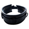This sexy luxury leather padded collar with all black accessories offers comfort with its soft leather lining, perfect for all players. Includes a padlock-able buckle for extra restriction. Keep you sub inline by attaching a leash to one of multiple D-rings.