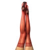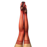 You'll be Feeling Hot Hot Hot. Red sheer thigh-high with black seam and Cuban heel. Perfect for holiday, going out, or staying in! A day or night wardrobe essential. Backseamed thigh-highs are the perfect way to kick it up a notch. These super-trendy tights by Kix'ies are the icing on the cake to all of your fall outfits.