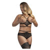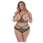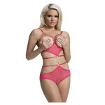 Description: From the Exposed by Magic Silk collection, this style includes: a non-restrictive bra featuring soft elastic straps, cupless cutouts, gold-tone O-ring details, adjustable shoulder straps with gold-tone sliders, cutout accents, hook and eye closure in the back, and a matching panty featuring soft elastic strap details, cheeky back coverage, crotchless cutout, and swan hook in the back.
