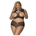 Passion Point Open Cup High Neck Bra And Split Crotch Skirt Panty