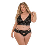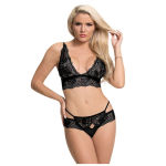 Description: From the Exposed by Magic Silk collection, this style includes: a lace bra featuring elastic and adjustable shoulder straps with gold tone sliders and hook and eye closures in the back, soft lace details and a matching panty with elastic strap detail.