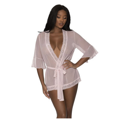 Seabreeze Flutter Sleeve Robe with Lace Trim