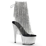 7" (17.8cm) Stiletto Heel, 2 3/4" (7cm) Platform Open Toe/Stiletto Heel Back Lace-Up Ankle Boot Featuring 4-Layer Chrome Plated, Simulated Rhinestone Fringe, Inner Side Zip Closure
