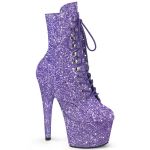 7" (178mm) Heel, 2 3/4" (70mm) Platform Lace-Up Front Glitter Ankle Boot Featuring Fully Wrapped Platform Bottom, Inner Side Zip Closure