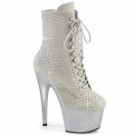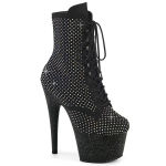 7" (178mm) Heel, 2 3/4" (70mm) Platform Lace-Up Front Ankle Boot Featuring AB Rhinestone Mesh Overlay Upper and Mini Iridescent Glitters All Over the Entire Platform Bottom, Inner Side Zip Closure
