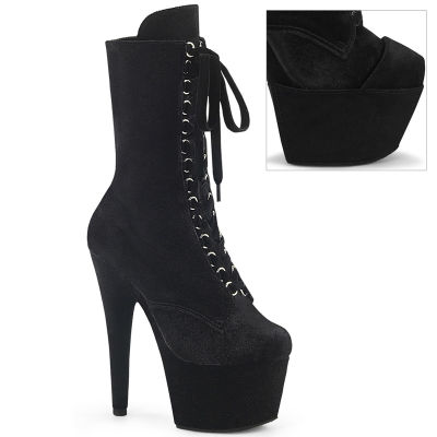 7" (178mm) Heel, 2 3/4" (70mm) Platform O-Ring Lace-Up Front Ankle Boot Featuring Fully Wrapped Platform Bottom, Inner Side Zip Closure. Includes a Pair of Matching Boot Protectors