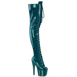 7" (178mm) Heel, 2 3/4" (70mm) Platform Lace-Up Front Thigh High Boot with Fully Wrapped Platform Bottom, Full-Length Inner Side Zip Closure