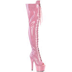 7" (178mm) Heel, 2 3/4" (70mm) Platform Peep Toe Lace-Up Front Thigh High Boot with Fully Wrapped Platform Bottom, Inner Zip Closure