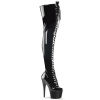 7" (17.8cm) Stiletto Heel, 2 3/4" (7cm) Platform Front Lace-Up Stretch Platform Thigh High Boot, Full Side Zip Closure