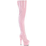 7" (178mm) Heel, 2 3/4" (70mm) Platform Stretch Lace-Up Back Thigh High Boot, Full Length Inner Side Zip Closure