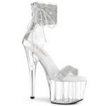 7" (178mm) Heel, 2 3/4" (70mm) Platform Close Back Ankle Cuff Sandal w/Side Lacing Featuring Rhinestone Embellished Ankle Cuff and Toe Strap, Back Zip Closure