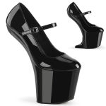8" (200mm) Heelless, 3" (76mm) Platform Mary Jane Pumps. Convertible to Wedge Oxford Pumps with Included Heel Attachements. **WARNING: Extreme Height and Unique Heelless Design. Not Recommended for Walking or Dancing.