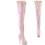 6" (152mm) Heel, 1 3/4" (45mm) Platform Two Tone Lace-Up/Zip-Up Stretch Thigh High Boot, Full Length Front Zip and 10" back Zip Closure