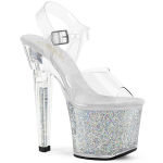 7" (178mm) Heart Shaped Heel, 3 1/4" (83mm) Platform Ankle Strap Sandal Featuring Iridescent Glitters on the Interior Walls of the Platform Bottom and Heel
