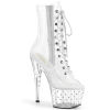 7" (178mm) Heel, 2 3/4" (70mm) Platform Clear Peep Toe Lace-Up Front Ankle Boot Featuring Rhinestones Studded on Heel and Outer Side of Platform Bottom, Inner Side Zip Closure