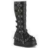 4 3/4" (121mm) Wedge Bell Bottom Draped Platform Knee High Boot Featuring Ornamental Buckle Straps, Non Functioning Outside Full Length Back Metal Zip Closure & Cone Studded Bell Bottom, Inside Metal Zip Closure