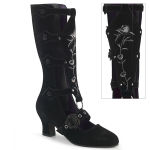 2 1/2" (64mm) Heel Mid-Calf Boot Featuring Embridoered Rose Coffin Shaped Front Shield with Elastic Rose Buttons, Full Inner Side Zipper