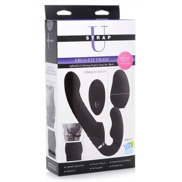 The Ergo-Fit technology found on this strapless strap-on helps you find the perfect fit for your body! Inflate the vaginal bulb to fill your hole and support this shaft for your thrusts. Users of all shapes, sizes, and experience levels will love the customizable fill - simply hold the inflation button found on the dildo shaft and remote control to find the amount of fill you need to comfortably support this swirly shaft!