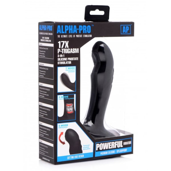 Treat your tush to a trifecta of tantalizing temptation. The 17x P-Trigasm features a powerfully buzzing perineum stem with 3 speeds and 4 patterns of external vibration. It also contains several rows of rotating beads beneath the surface of the shaft base, to swirl seductively around your sphincter with 5 settings. Finally, a bead beneath the surface of the tip will move up and down, milking your sweet spot with an additional 5 modes of motion.