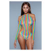 Cut out detail bodysuit with mesh detail and thong cut bottom.