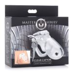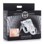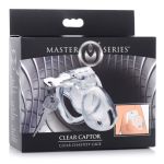 Confine your sub in this clear chastity prison! The Clear Captor locks your partners sexuality in clear view, preventing them from pleasuring themselves until you set them free. Made with forgiving materials for long term comfort, as well as a generous amount of ventilation holes and a pee through tip.