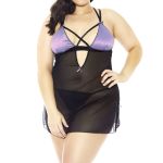 Satin and mesh soft cup with keyhole, criss cross detail, and match g-string.