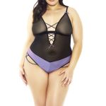 Soft cup mesh and satin teddy with criss cross detail.