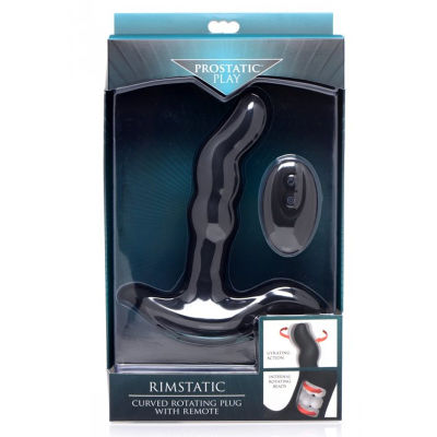 Discover new sensations in P-spot pleasure! This premium silicone prostate massager vibrates powerfully inside your booty, while also teasing your opening with rotating beads that mimic the sensation of analingus. Meanwhile, the shaft will gyrate inside your hole, brushing up against your sweet spot with its dramatic curve and bold ridges. At the base of the plug, a ribbed perineum stimulator will buzz powerfully, allowing you to indulge your body in internal and external stimulation. Use the remote control to play with 3 levels and 7 functions of vibration, and 3 speeds of rotation and gyration. The Rimstatic is made of non-porous and phthalate-free silicone.