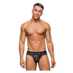Insert bikini features full front coverage, 2 inch sides, full rear coverage. Supple faux leather inserts and waistband. Logo'd label. Semi sheer stretch fabric infused with dazzling metallic stripes, ultra soft hand feel. Supple faux leather waistbands, inserts and trim. Plush elastic leg bands. Hand wash separately, cold water, line dry. Do not bleach.