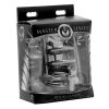 Confine your slaves penis in a CBT device that will ensure he experiences no pleasure! This chastity cage does more than just trap his cock and balls in cold, unrelenting stainless steel. It also features two spreaders, rounded and controlled by thumbscrews, to elevate your sadistic fantasies! Push his entire package through the base ring and then his shaft through the other three rings, and then lock into place. How long will you force your naughty boy to withstand the torment of the Deluxe Cleaver? Cleans and sterilizes easily with mild soap and warm water.