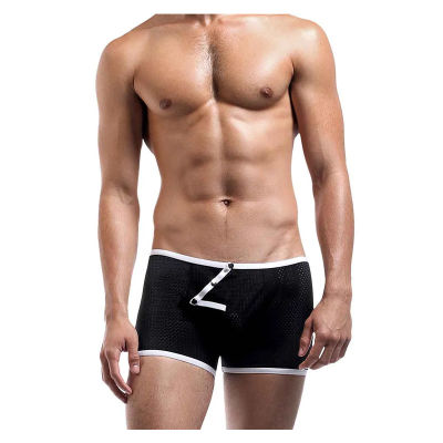 Mini short with a functional snap fly pouch, plush elastic trim. Lightweight, breathable sport mesh with plush elastic trim. Hand wash separately, cold water, line dry. Do not bleach.