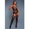 1 pc multiple strapped top attached garters and mid high stockings with floral design. (Thong not included)