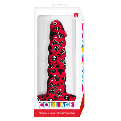 Goth Girl� is perfect for edgy, black-nail-polish crowd, with its scatter-print of skulls, crossbones, black clouds and bold red/black color-scheme. Each Collage features an ultra-grip suction cup for hands-free use or fun harness-play. Each quickly warms to your touch, are non-porous and easy to clean with gentle soap and warm water. Goth Girl has sensuous spiraling curves for added pleasure, and a slightly phallic tip just because Goth Girl ain't bashful.