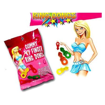 Indulge in these wearable and delicious gummy penis finger rings! They fit right over your finger so you can suck on them anywhere, great for sharing or eat them all up yourself, we won't judge. There are eight finger ring dongs in each bag.