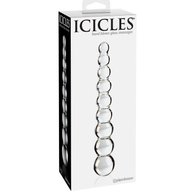 Elegant, upscale, and hand-crafted with amazing attention to detail, this luxurious line of glass massagers will leave you breathless. Each hand-blown Icicle glass wand is sleek, unique, and made to play hard. The hypoallergenic glass is nonporous and body safe, and when cared for properly, is designed to last a lifetime. Run the wand under warm water or place it in the microwave to heat things up. Chill it under cold water or put it in the freezer for a cool sensation. Overall length is 8.75"with a girth of 2.35".